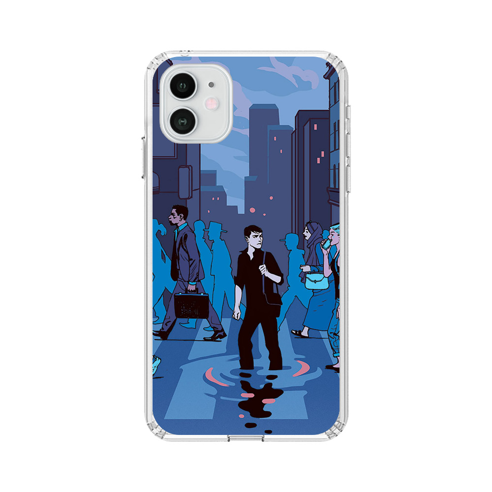 #urban scene #City street #crosswalk #crowd #solitude #evening #commute #people walking #urban life #street illustration #lonely person #blue tones #dusk #building silhouettes #cityscape #pedestrian crossing #modern life #daily routine #street art #illustration