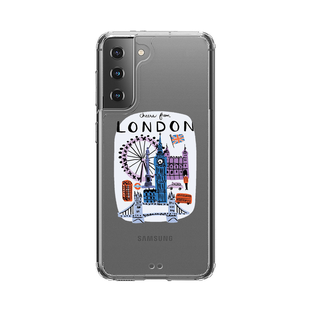 #London #Big Ben #London Eye #red telephone box #double-decker bus #British flag #UK landmarks #travel illustration #city skyline #tourist attractions #urban art #colorful drawing #famous landmarks #London Bridge #tourism #urban sketch #holiday souvenir #European city #iconic buildings #cheerful design